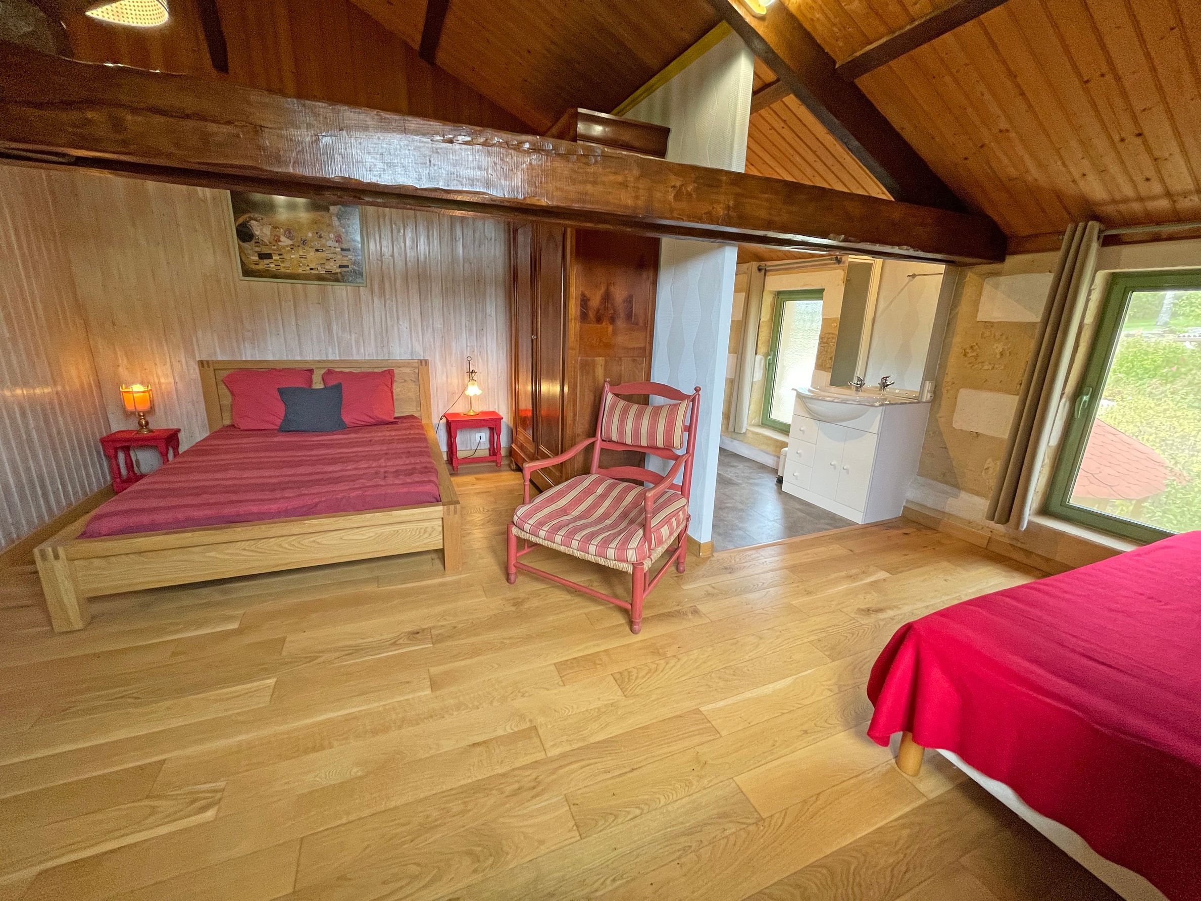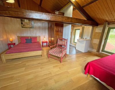 De gîte biedt de mogelijkheid tot het boeken van een extra slaapkamer met badkamer en toilet op de eerste verdieping, waarmee het aantal gasten kan worden uitgebreid naar 3 of 4 personen. Deze extra kamer is zeer ruim, heeft een kingsize bed (180 x 200) en biedt een fantastisch uitzicht.