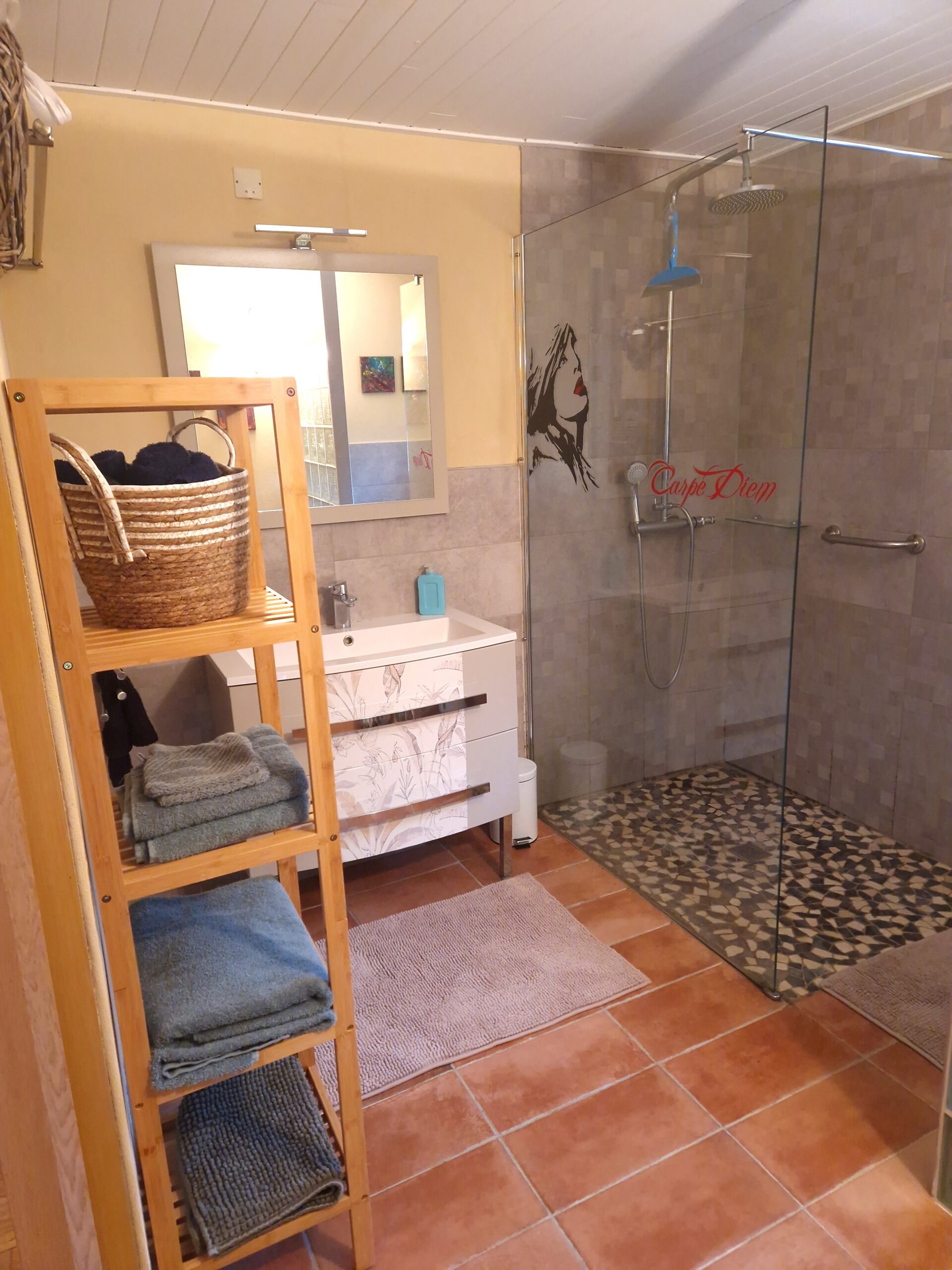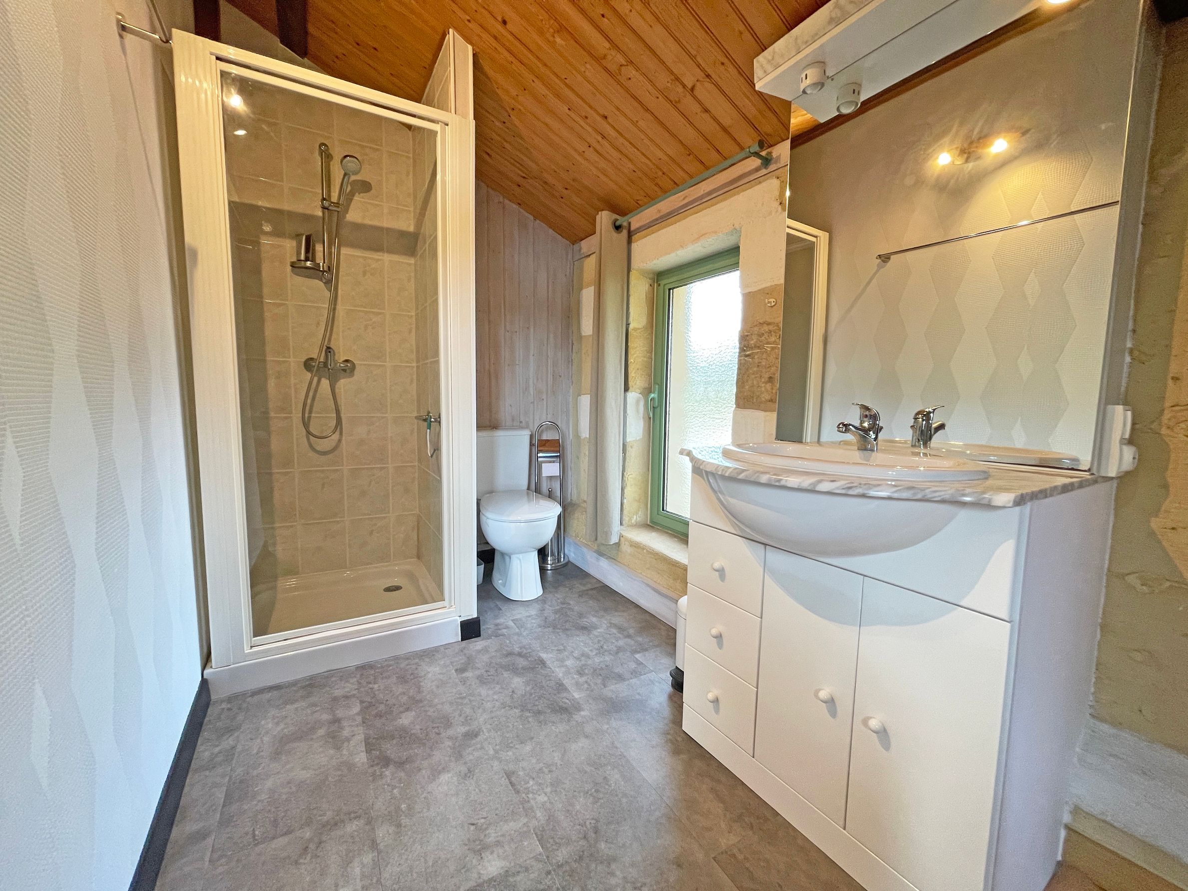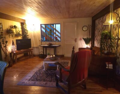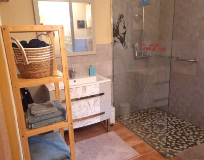 De gîte is geschakeld met het hoofdverblijf waar wij wonen en heeft een eigen ingang, een privéterras en een privéparkeerplaats. Tevens kan er gebruik worden gemaakt van het zwembad (gedeeld met ons) en van de prachtige tuin van ong. 3000 m2. De gîte bevindt zich op de begane grond, heeft een oppervlakte van 50 m2 en is geschikt voor max 2 personen. Daarnaast is er de mogelijkheid tot het boeken van een extra slaapkamer op de eerste verdieping boven de gîte, met een kingsize bed (180 x 200) en een eigen badkamer met toilet (totaal 35 m2), waarmee het aantal gasten kan worden uitgebreid tot 4. De gîte en de extra slaapkamer staan via een trappenhal met elkaar in verbinding.