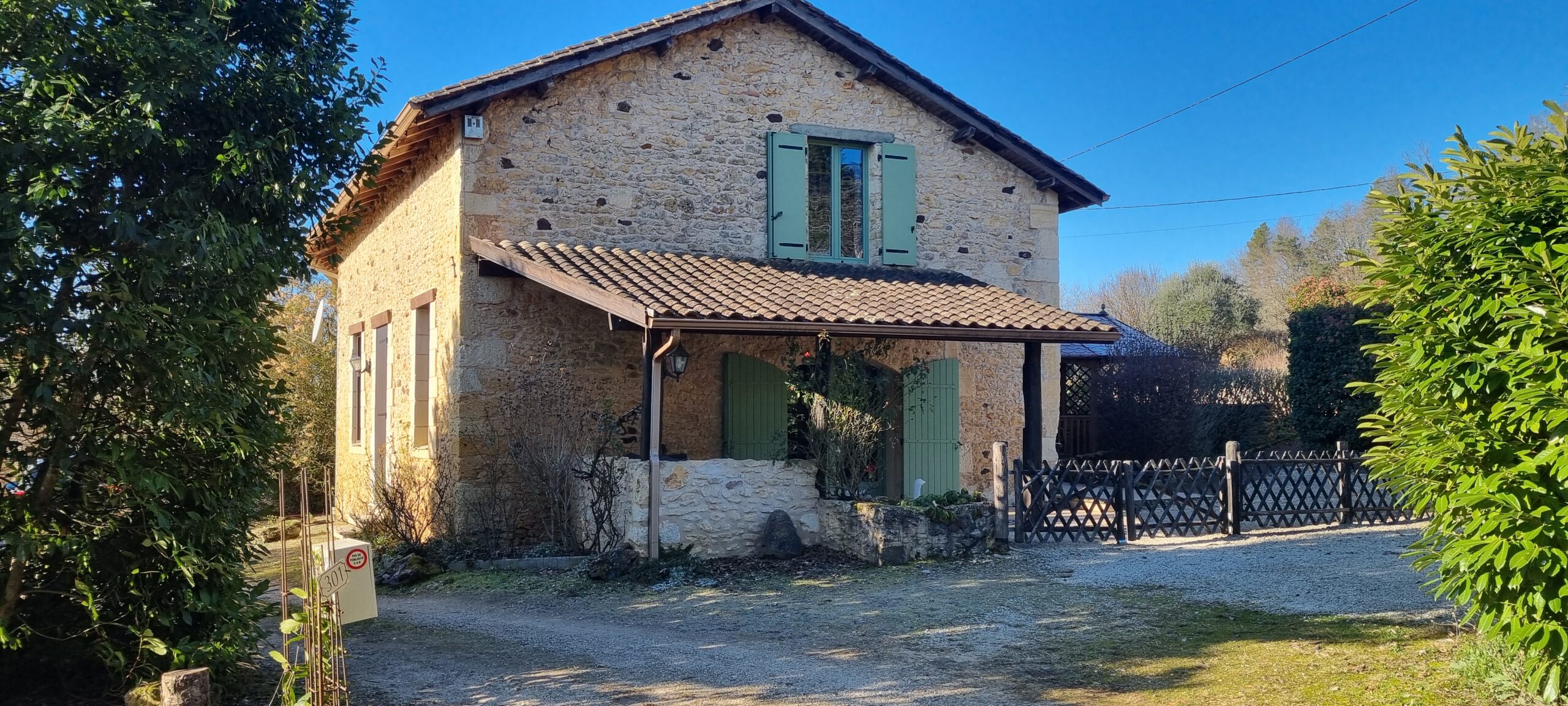 Het adres is 310 Impasse du Brame, 24380 Veyrines-de-Vergt. 'Impasse' is Frans voor doodlopend, in ons geval een doodlopende bosweg (goed begaanbaar) hetgeen borg staat voor rust en stilte. Het enige geluid dat je hier hoort zijn de vogels en je moet niet verrast zijn als je 's ochtends vroeg een paar reeën in de tuin ziet lopen! Het adres is doorgaans goed te vinden op navigatiesystemen en anders via Google maps.